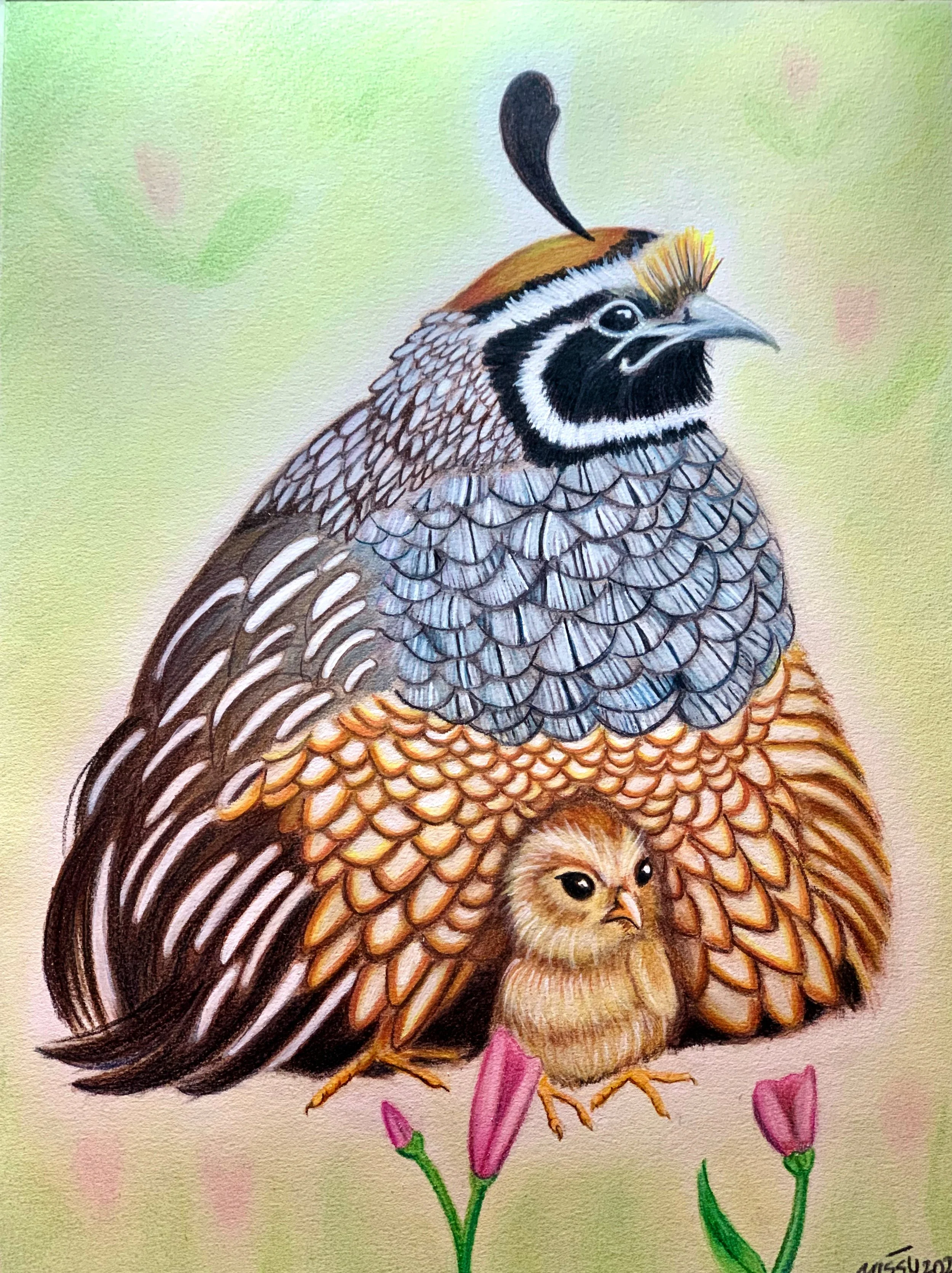 California Quail and Chick #61